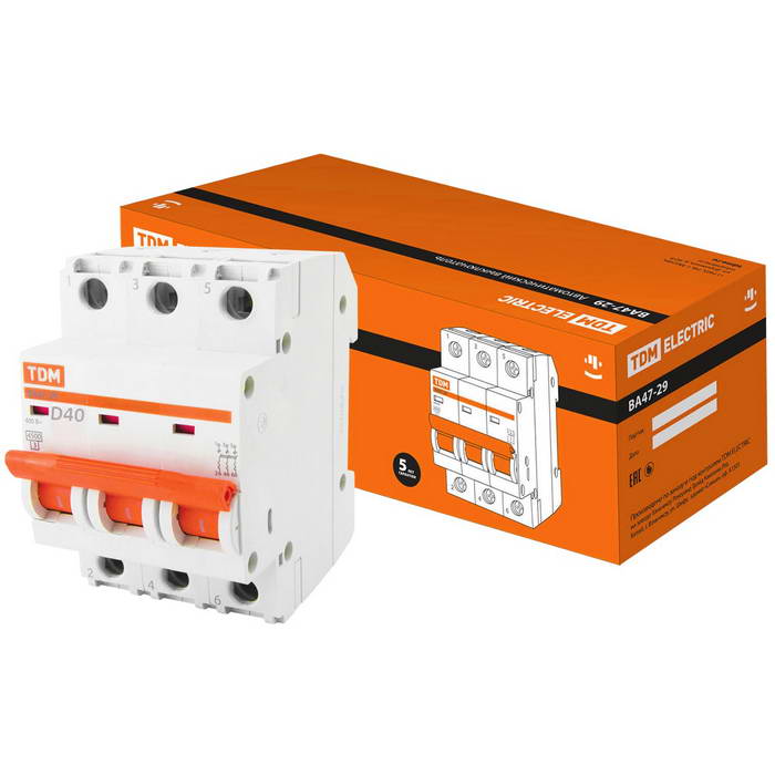 | ВА47-29 3Р 40А 4.5кА х-ка D | 4 | 2 |