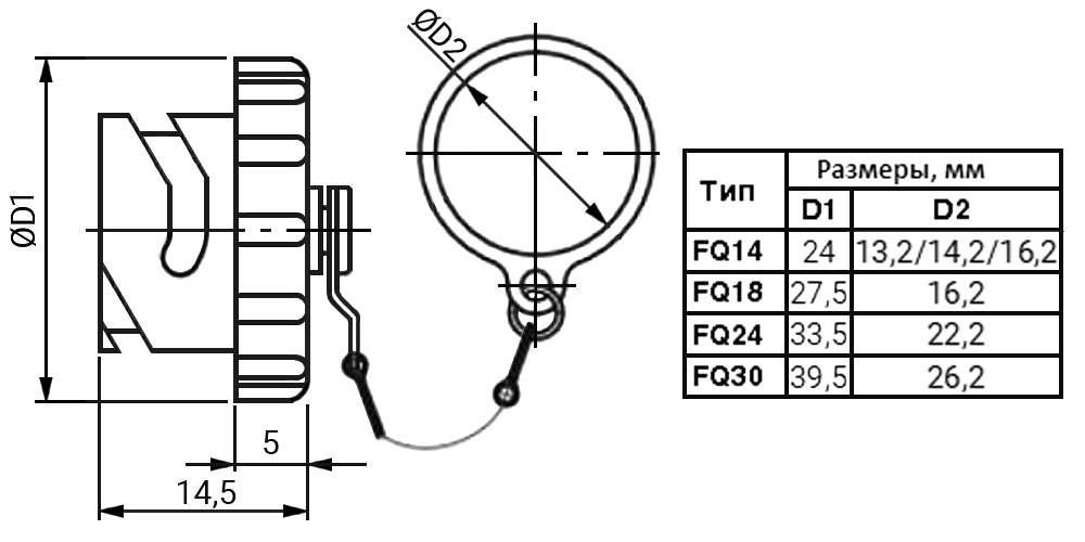 | Тип разъёма : | Заглушка разъема серии FQ30 кабельная с цепочкой |
