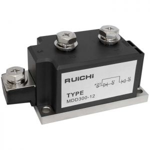 Диодные модули типа МДД представляют собой конструкцию из двух и более мощных диодов, реализованных в прочном, монолитном полимерном корпусе. Ток модуля может быть от 25А до 1250А. Напряжение может достигать 2800В. Современные методы изготовления диодного модуля позволяют уменьшить падение напряжения на диоде, нагрев модуля, увеличить время безотказной работы и суммарной наработки.