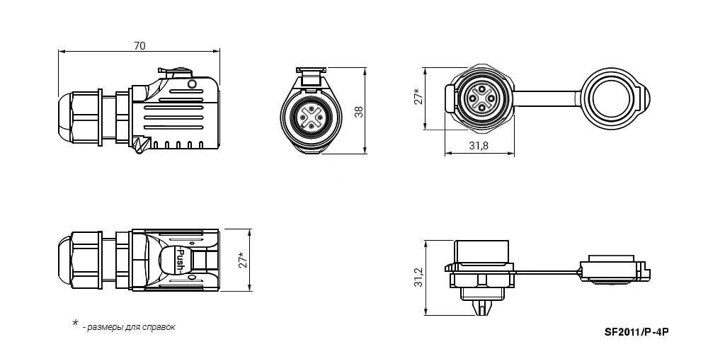 | Ширина, мм : | вилка* - 27; розетка - 31.8 (* - для справок) |