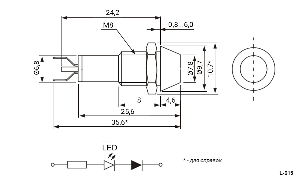 | Тип : | Индикатор светодиодный в корпусе серии L-615 |